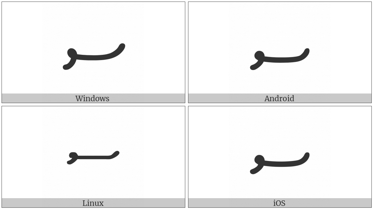 The image below shows how the “Thaana Letter Seenu” symbol might look like on different operating systems. If the font in which this web site is displayed does not contain the symbol and there is no fallback font able to render it, you can use the image below to get an idea of what it should look like.
