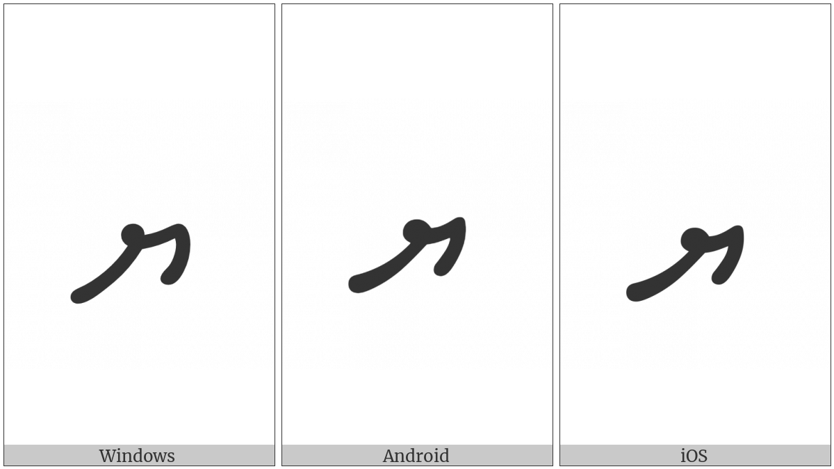 The image below shows how the “Thaana Letter Yaa” symbol might look like on different operating systems. If the font in which this web site is displayed does not contain the symbol and there is no fallback font able to render it, you can use the image below to get an idea of what it should look like.