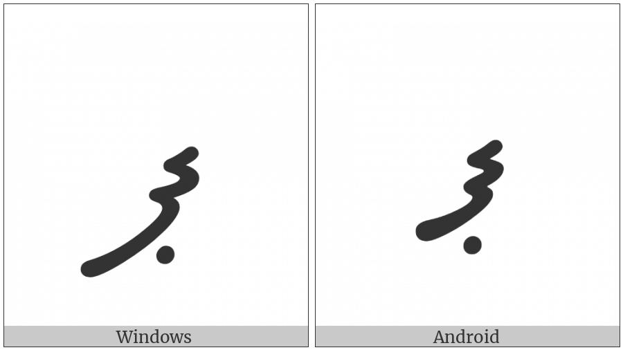 The image below shows how the “Thaana Letter Paviyani” symbol might look like on different operating systems. If the font in which this web site is displayed does not contain the symbol and there is no fallback font able to render it, you can use the image below to get an idea of what it should look like.