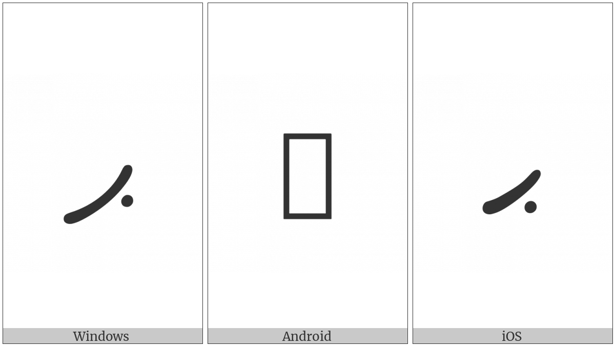The image below shows how the “Thaana Letter Hhaa” symbol might look like on different operating systems. If the font in which this web site is displayed does not contain the symbol and there is no fallback font able to render it, you can use the image below to get an idea of what it should look like.