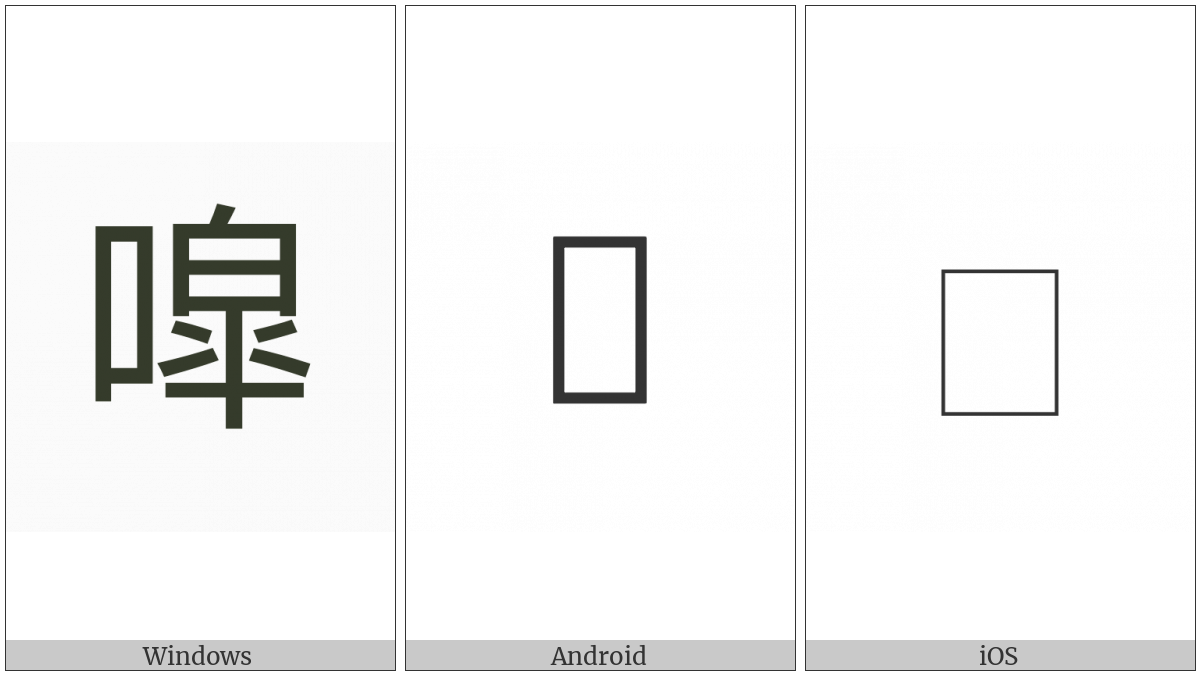 The image below shows how the “Cjk Compatibility Ideograph-2F84E” symbol might look like on different operating systems. If the font in which this web site is displayed does not contain the symbol and there is no fallback font able to render it, you can use the image below to get an idea of what it should look like.