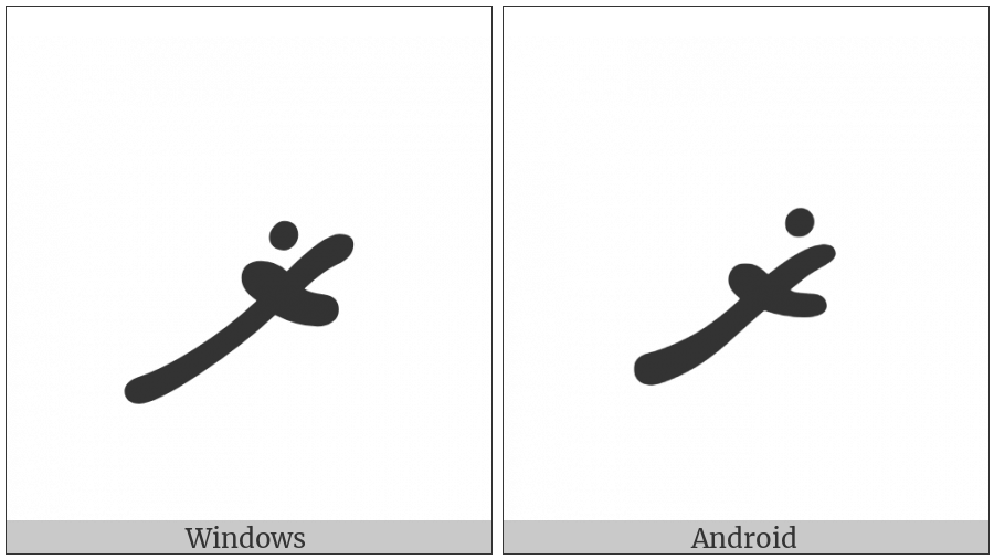 The image below shows how the “Thaana Letter Zaa” symbol might look like on different operating systems. If the font in which this web site is displayed does not contain the symbol and there is no fallback font able to render it, you can use the image below to get an idea of what it should look like.