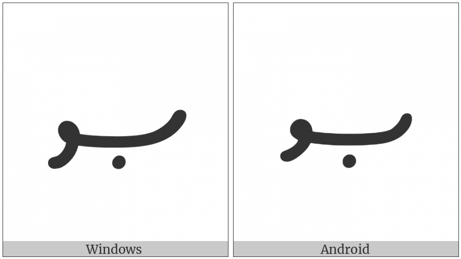 The image below shows how the “Thaana Letter Saadhu” symbol might look like on different operating systems. If the font in which this web site is displayed does not contain the symbol and there is no fallback font able to render it, you can use the image below to get an idea of what it should look like.
