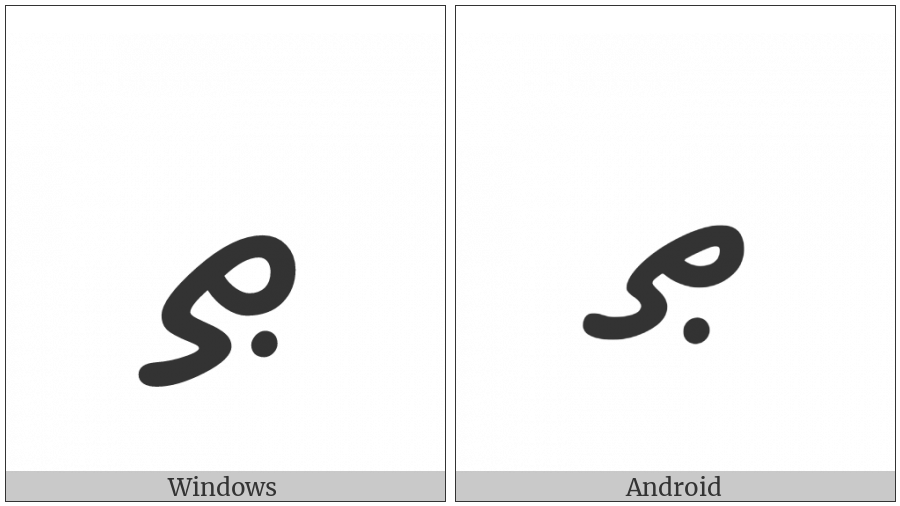 The image below shows how the “Thaana Letter To” symbol might look like on different operating systems. If the font in which this web site is displayed does not contain the symbol and there is no fallback font able to render it, you can use the image below to get an idea of what it should look like.