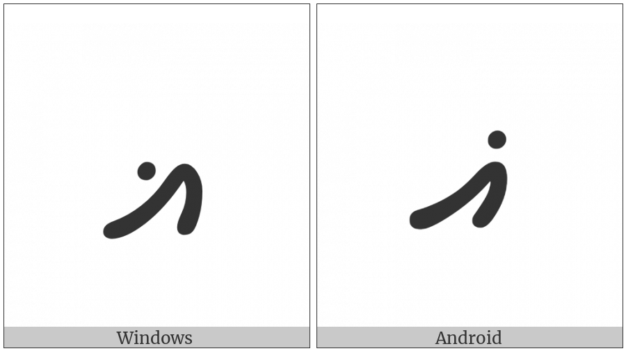 The image below shows how the “Thaana Letter Ghainu” symbol might look like on different operating systems. If the font in which this web site is displayed does not contain the symbol and there is no fallback font able to render it, you can use the image below to get an idea of what it should look like.