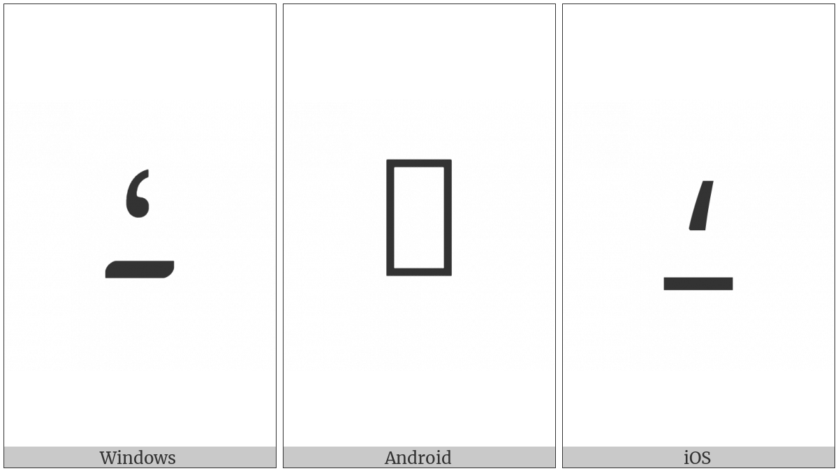 The image below shows how the “Nko Letter Dagbasinna” symbol might look like on different operating systems. If the font in which this web site is displayed does not contain the symbol and there is no fallback font able to render it, you can use the image below to get an idea of what it should look like.