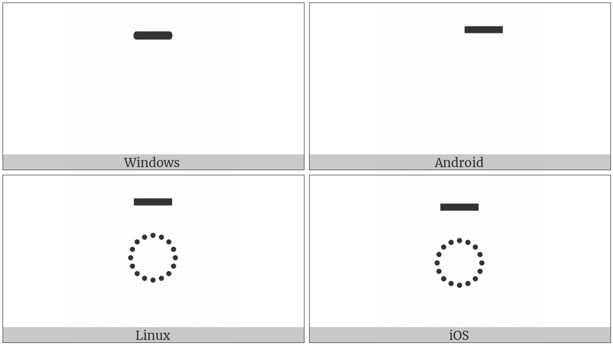 The image below shows how the “Nko Combining Short High Tone” symbol might look like on different operating systems. If the font in which this web site is displayed does not contain the symbol and there is no fallback font able to render it, you can use the image below to get an idea of what it should look like.