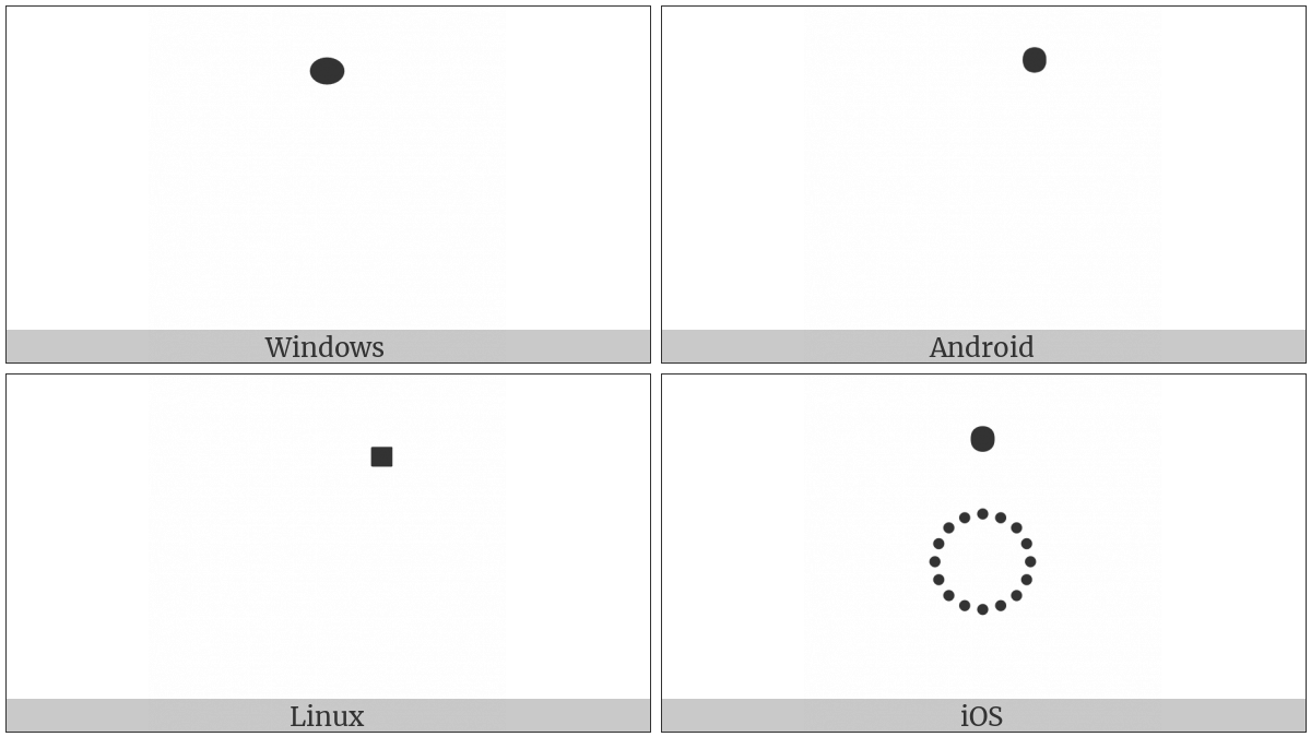 The image below shows how the “Nko Combining Short Rising Tone” symbol might look like on different operating systems. If the font in which this web site is displayed does not contain the symbol and there is no fallback font able to render it, you can use the image below to get an idea of what it should look like.