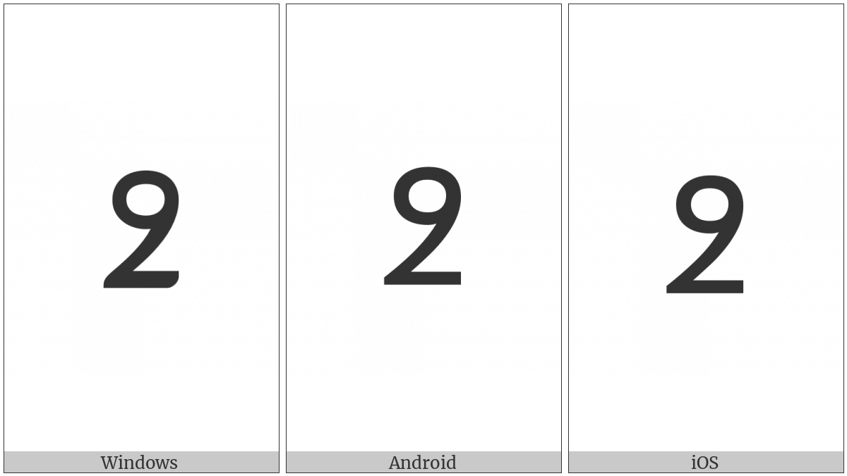 The image below shows how the “Nko Symbol Oo Dennen” symbol might look like on different operating systems. If the font in which this web site is displayed does not contain the symbol and there is no fallback font able to render it, you can use the image below to get an idea of what it should look like.