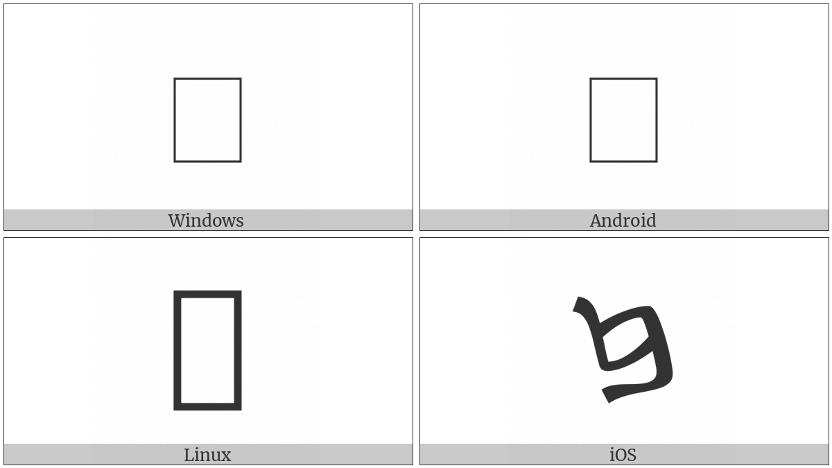 The image below shows how the “Samaritan Letter Zen” symbol might look like on different operating systems. If the font in which this web site is displayed does not contain the symbol and there is no fallback font able to render it, you can use the image below to get an idea of what it should look like.