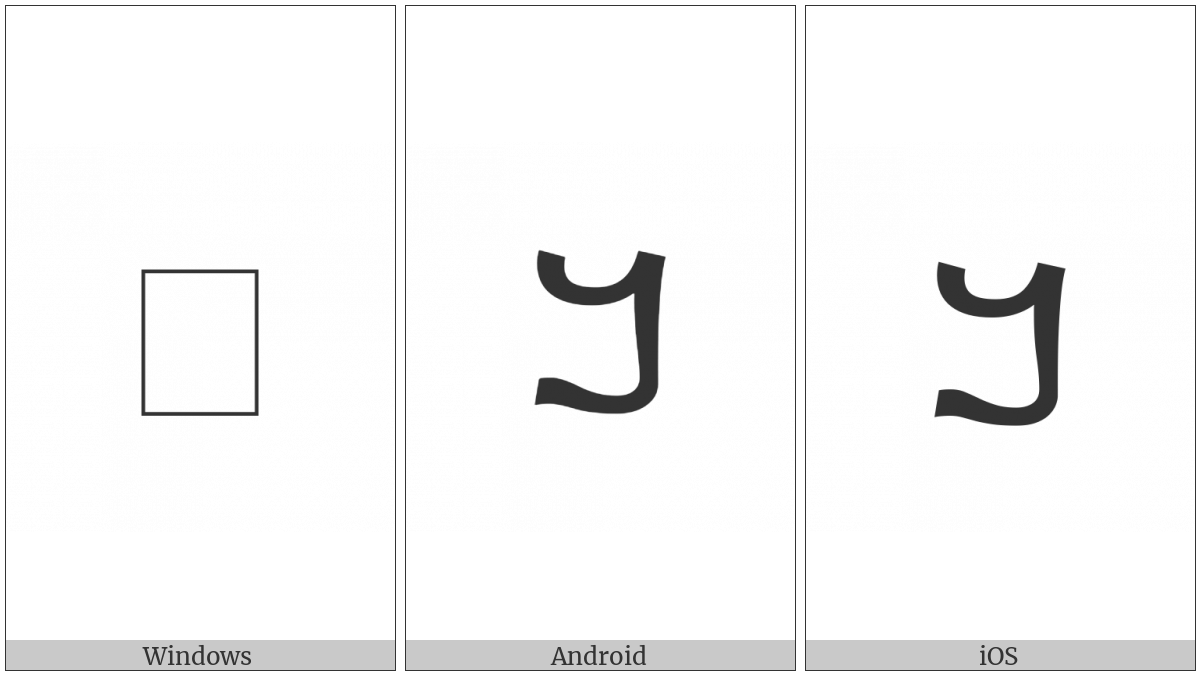 The image below shows how the “Samaritan Letter Kaaf” symbol might look like on different operating systems. If the font in which this web site is displayed does not contain the symbol and there is no fallback font able to render it, you can use the image below to get an idea of what it should look like.