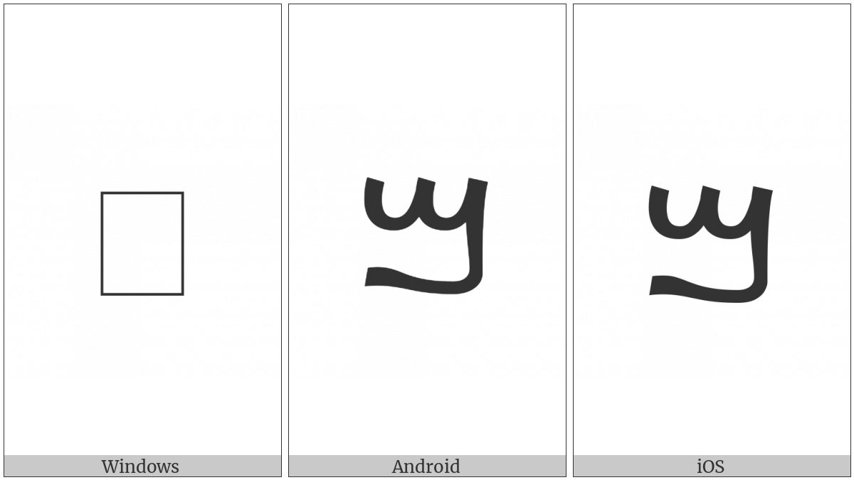 The image below shows how the “Samaritan Letter Mim” symbol might look like on different operating systems. If the font in which this web site is displayed does not contain the symbol and there is no fallback font able to render it, you can use the image below to get an idea of what it should look like.