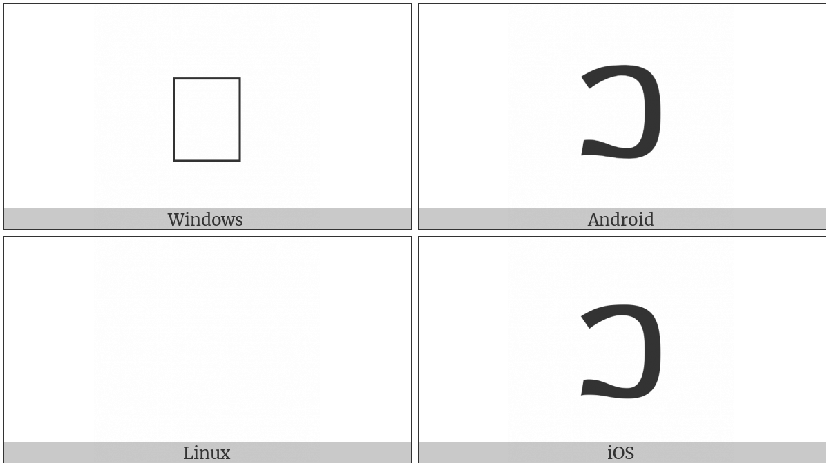 The image below shows how the “Samaritan Letter Fi” symbol might look like on different operating systems. If the font in which this web site is displayed does not contain the symbol and there is no fallback font able to render it, you can use the image below to get an idea of what it should look like.