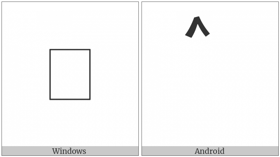 The image below shows how the “Samaritan Vowel Sign Long U” symbol might look like on different operating systems. If the font in which this web site is displayed does not contain the symbol and there is no fallback font able to render it, you can use the image below to get an idea of what it should look like.