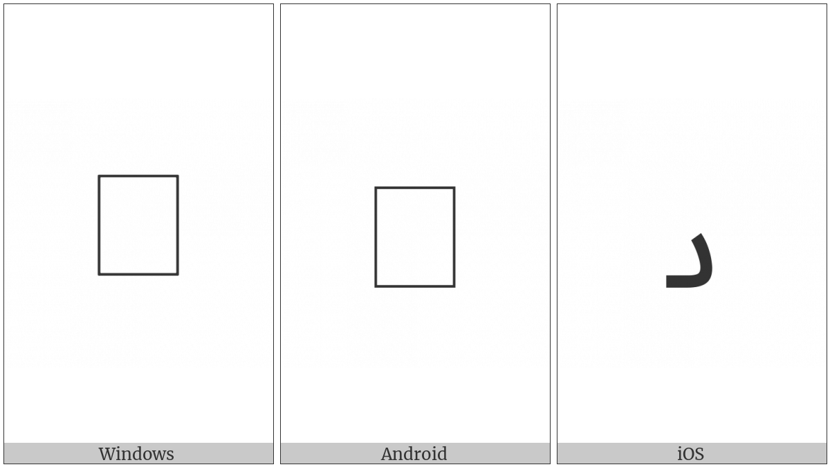 The image below shows how the “Mandaic Letter Ushenna” symbol might look like on different operating systems. If the font in which this web site is displayed does not contain the symbol and there is no fallback font able to render it, you can use the image below to get an idea of what it should look like.