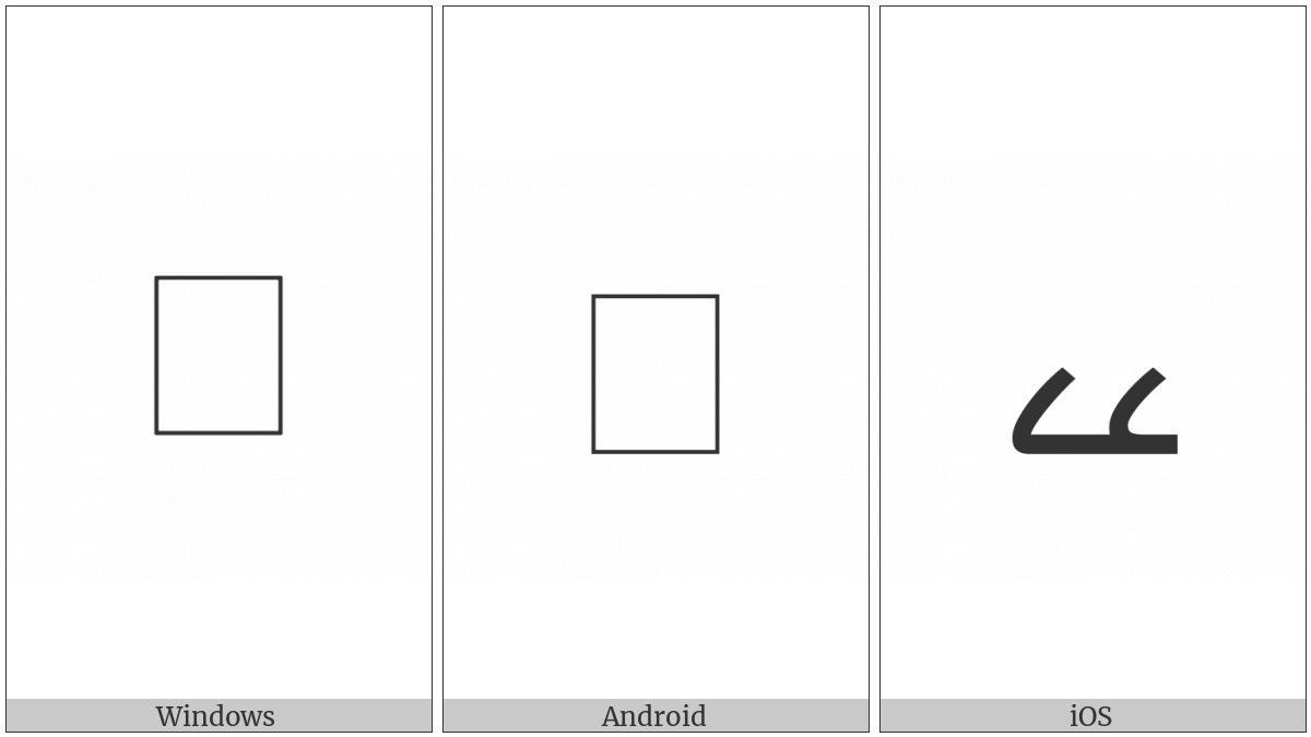 The image below shows how the “Mandaic Letter Dushenna” symbol might look like on different operating systems. If the font in which this web site is displayed does not contain the symbol and there is no fallback font able to render it, you can use the image below to get an idea of what it should look like.