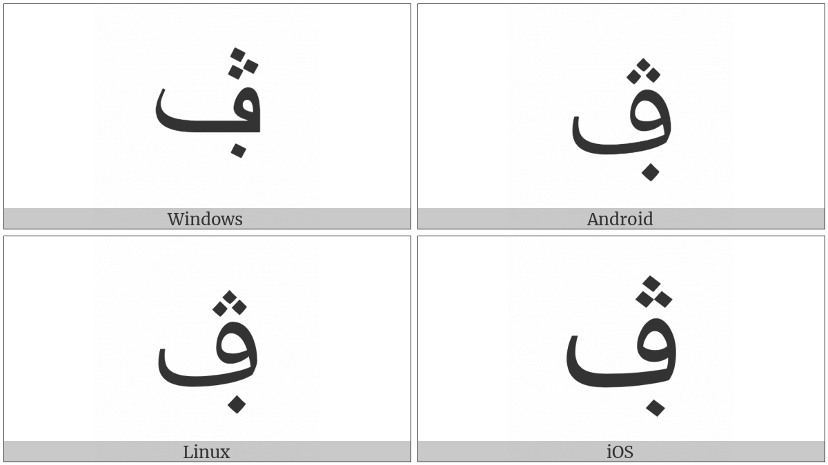 “Arabic Letter Feh With Dot Below And Three Dots Above” on various operating systems