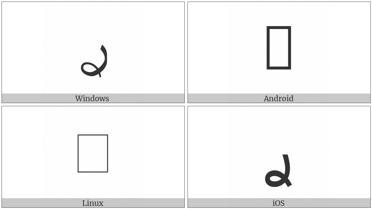 The image below shows how the “Arabic Letter Reh With Loop” symbol might look like on different operating systems. If the font in which this web site is displayed does not contain the symbol and there is no fallback font able to render it, you can use the image below to get an idea of what it should look like.
