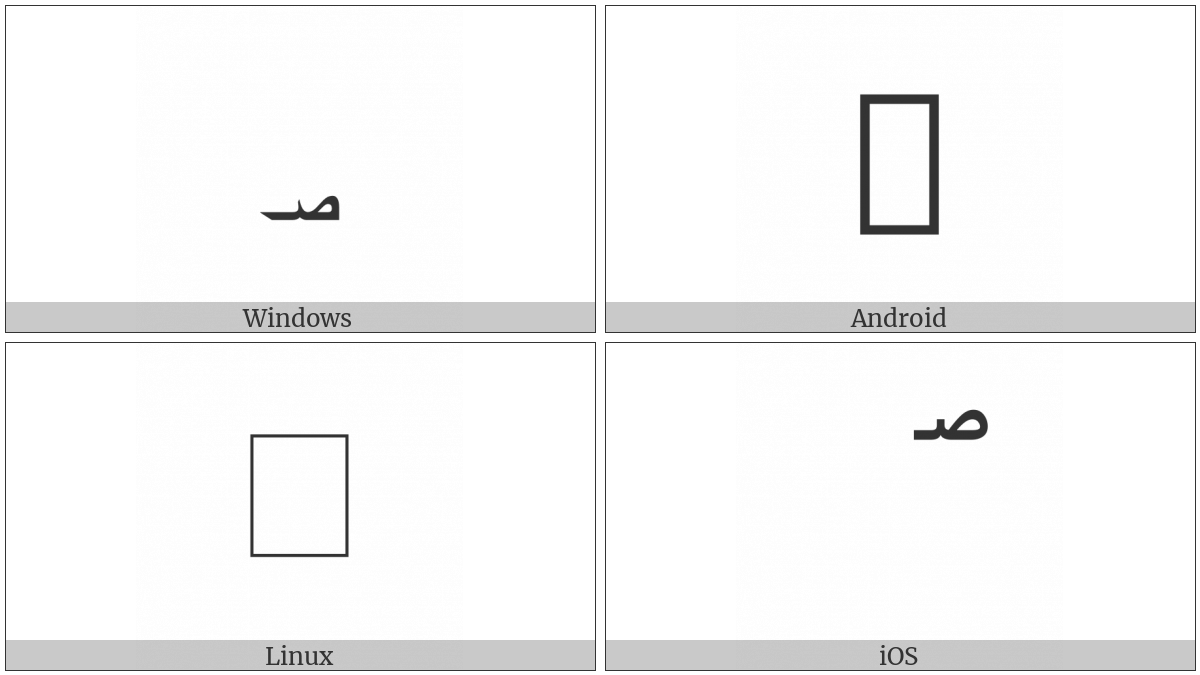 The image below shows how the “Arabic Small High Sign Safha” symbol might look like on different operating systems. If the font in which this web site is displayed does not contain the symbol and there is no fallback font able to render it, you can use the image below to get an idea of what it should look like.