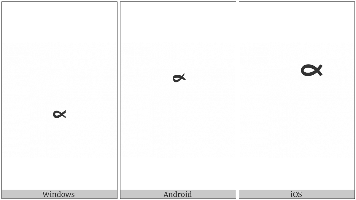 The image below shows how the “Arabic Tone Loop Above” symbol might look like on different operating systems. If the font in which this web site is displayed does not contain the symbol and there is no fallback font able to render it, you can use the image below to get an idea of what it should look like.