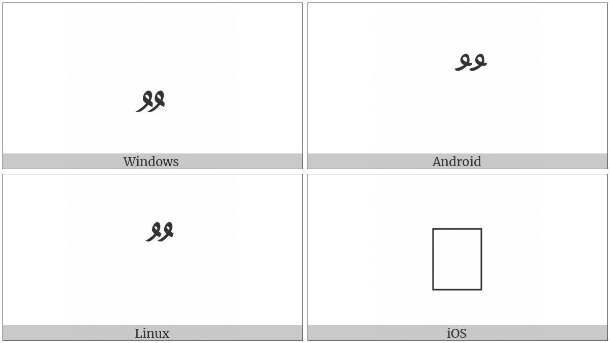 The image below shows how the “Arabic Open Dammatan” symbol might look like on different operating systems. If the font in which this web site is displayed does not contain the symbol and there is no fallback font able to render it, you can use the image below to get an idea of what it should look like.
