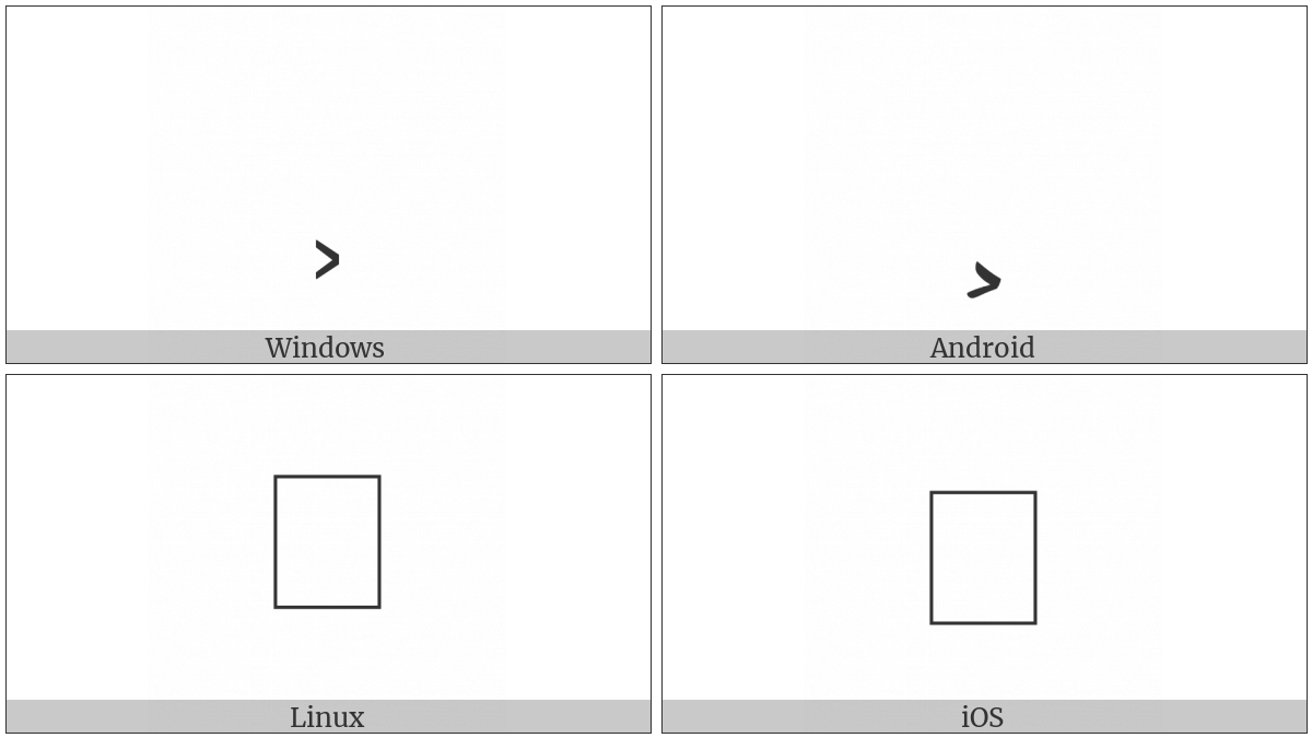 The image below shows how the “Arabic Right Arrowhead Below” symbol might look like on different operating systems. If the font in which this web site is displayed does not contain the symbol and there is no fallback font able to render it, you can use the image below to get an idea of what it should look like.