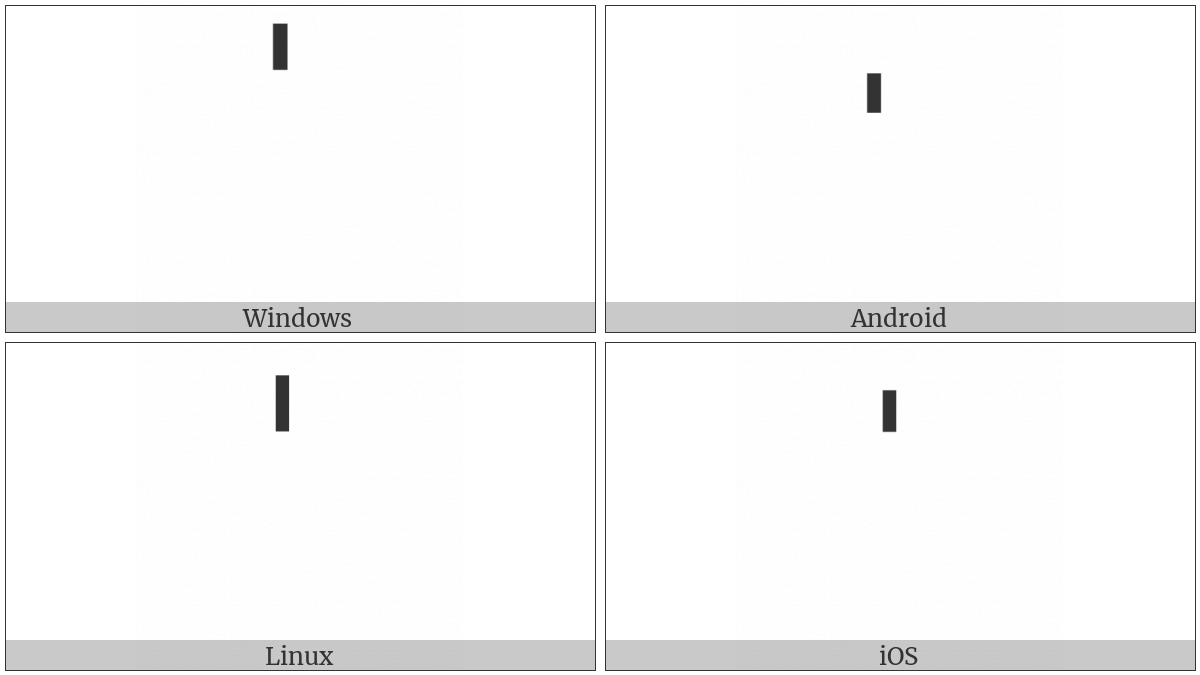 The image below shows how the “Devanagari Stress Sign Udatta” symbol might look like on different operating systems. If the font in which this web site is displayed does not contain the symbol and there is no fallback font able to render it, you can use the image below to get an idea of what it should look like.