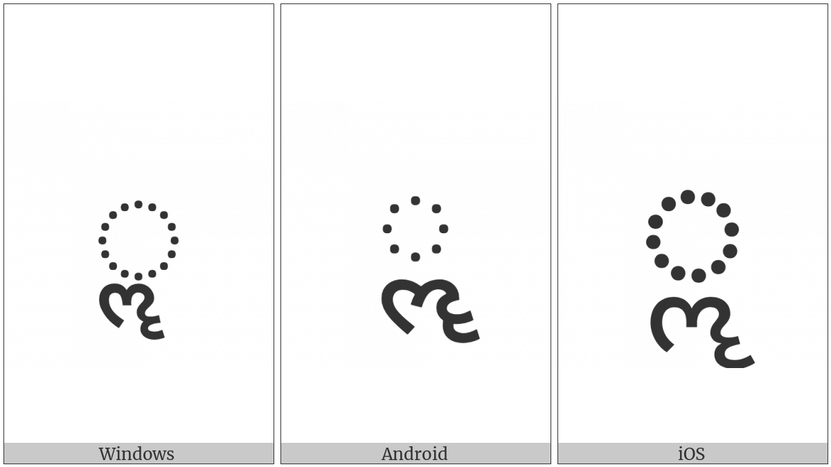 The image below shows how the “Devanagari Vowel Sign Vocalic Ll” symbol might look like on different operating systems. If the font in which this web site is displayed does not contain the symbol and there is no fallback font able to render it, you can use the image below to get an idea of what it should look like.