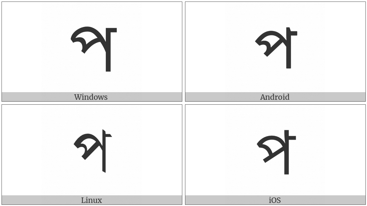 “Bengali Letter Pa” on various operating systems