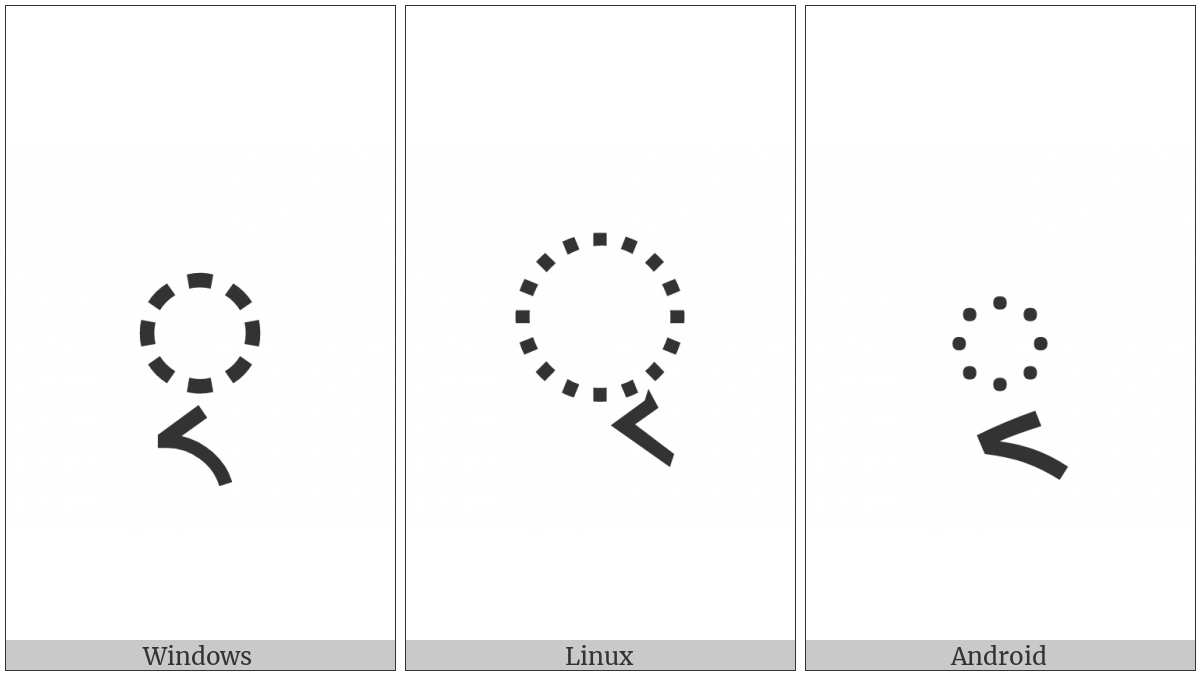 The image below shows how the “Bengali Vowel Sign Vocalic R” symbol might look like on different operating systems. If the font in which this web site is displayed does not contain the symbol and there is no fallback font able to render it, you can use the image below to get an idea of what it should look like.
