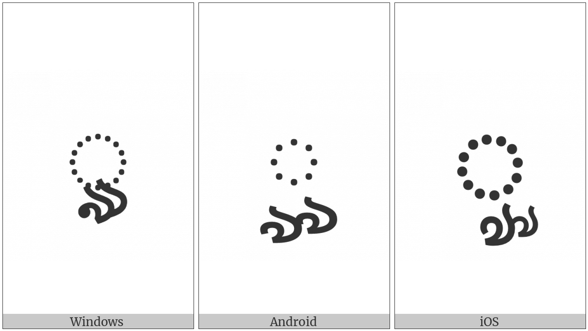 The image below shows how the “Bengali Vowel Sign Vocalic Ll” symbol might look like on different operating systems. If the font in which this web site is displayed does not contain the symbol and there is no fallback font able to render it, you can use the image below to get an idea of what it should look like.