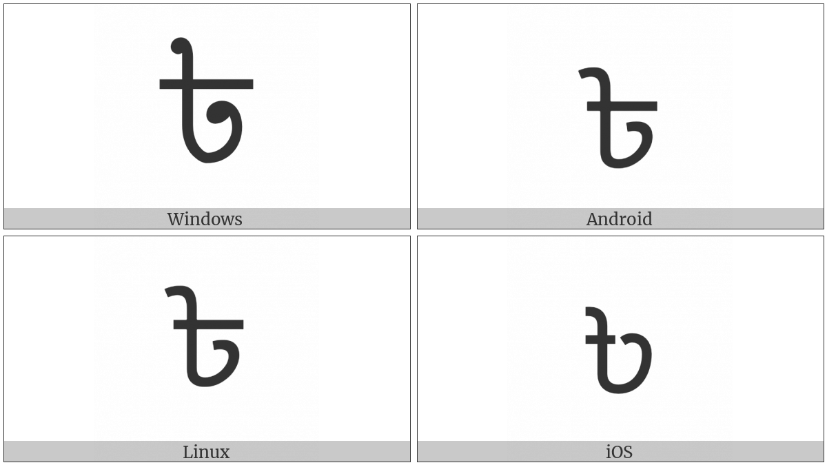 The image below shows how the “Bengali Rupee Sign” symbol might look like on different operating systems. If the font in which this web site is displayed does not contain the symbol and there is no fallback font able to render it, you can use the image below to get an idea of what it should look like.