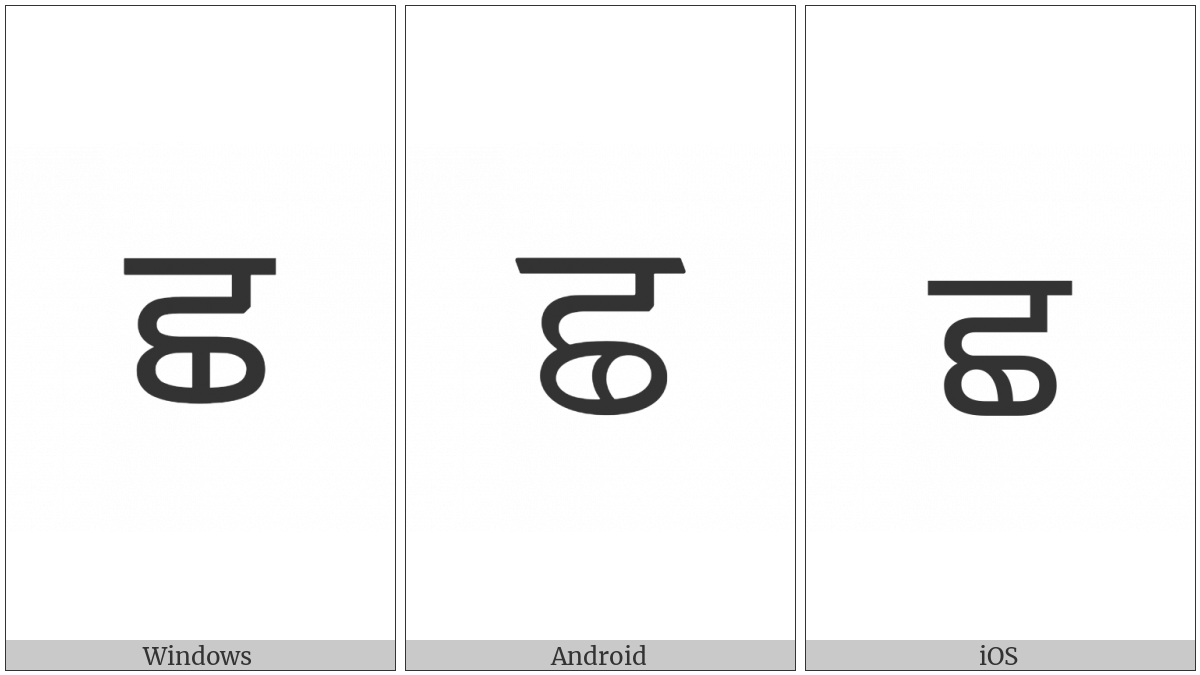 The image below shows how the “Gurmukhi Letter Cha” symbol might look like on different operating systems. If the font in which this web site is displayed does not contain the symbol and there is no fallback font able to render it, you can use the image below to get an idea of what it should look like.