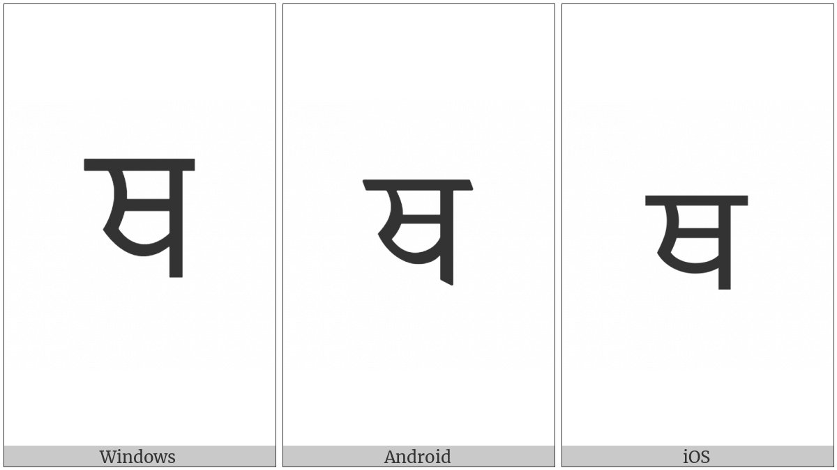 The image below shows how the “Gurmukhi Letter Tha” symbol might look like on different operating systems. If the font in which this web site is displayed does not contain the symbol and there is no fallback font able to render it, you can use the image below to get an idea of what it should look like.