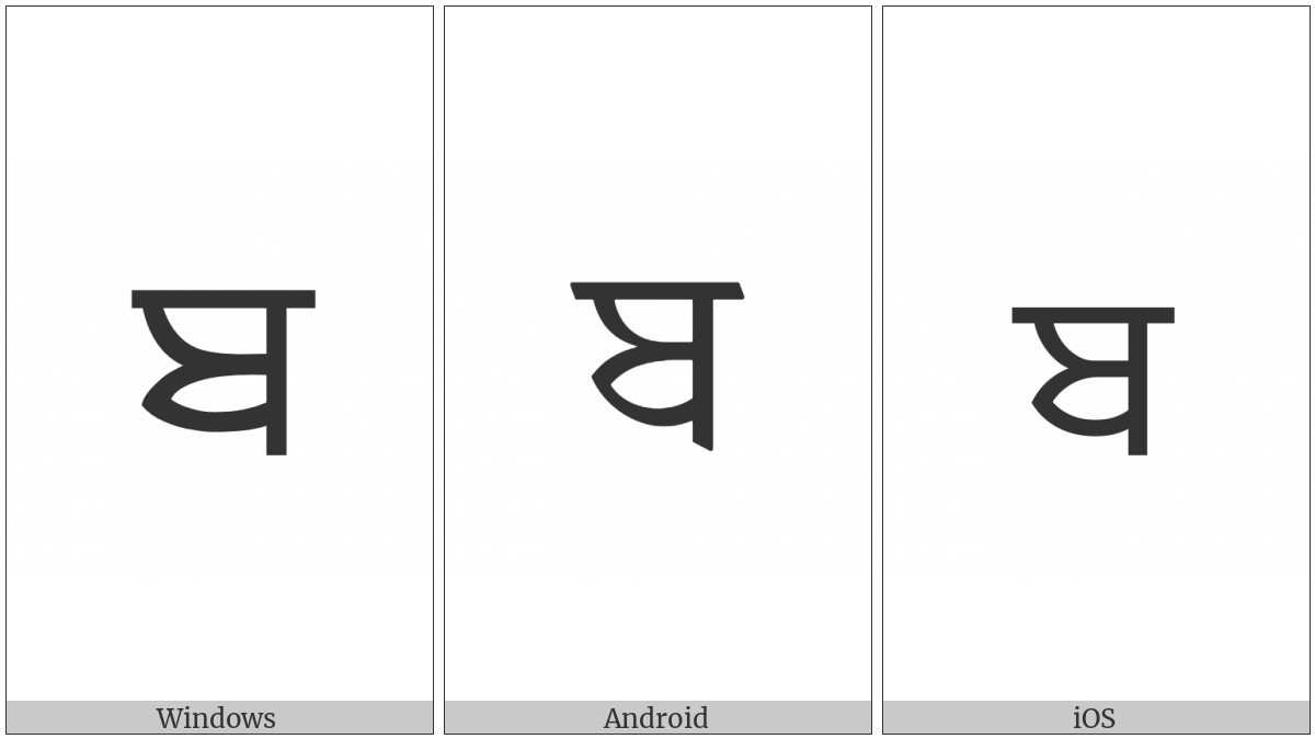 The image below shows how the “Gurmukhi Letter Ba” symbol might look like on different operating systems. If the font in which this web site is displayed does not contain the symbol and there is no fallback font able to render it, you can use the image below to get an idea of what it should look like.