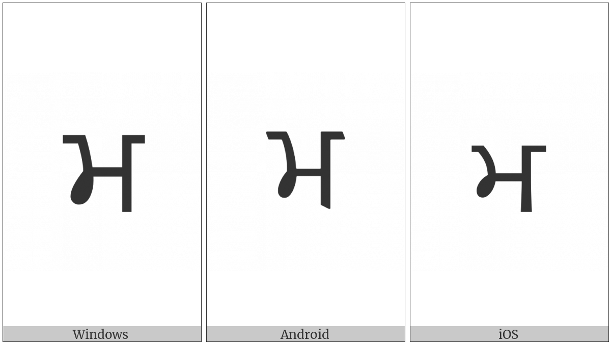 The image below shows how the “Gurmukhi Letter Ma” symbol might look like on different operating systems. If the font in which this web site is displayed does not contain the symbol and there is no fallback font able to render it, you can use the image below to get an idea of what it should look like.