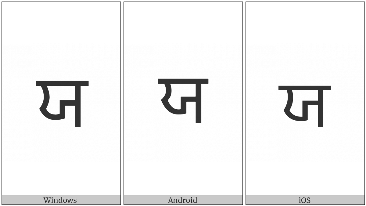 The image below shows how the “Gurmukhi Letter Ya” symbol might look like on different operating systems. If the font in which this web site is displayed does not contain the symbol and there is no fallback font able to render it, you can use the image below to get an idea of what it should look like.