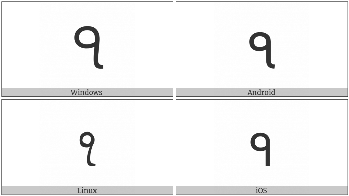 The image below shows how the “Gurmukhi Digit One” symbol might look like on different operating systems. If the font in which this web site is displayed does not contain the symbol and there is no fallback font able to render it, you can use the image below to get an idea of what it should look like.