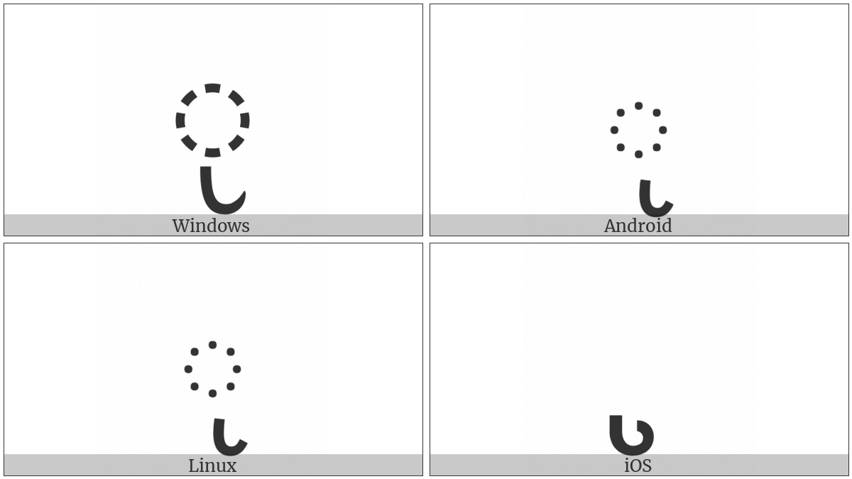 The image below shows how the “Gurmukhi Sign Yakash” symbol might look like on different operating systems. If the font in which this web site is displayed does not contain the symbol and there is no fallback font able to render it, you can use the image below to get an idea of what it should look like.