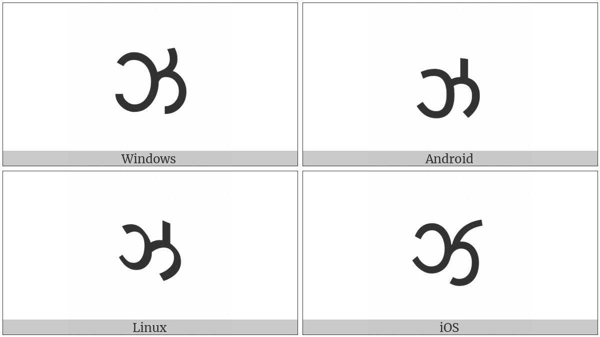 The image below shows how the “Gujarati Letter Jha” symbol might look like on different operating systems. If the font in which this web site is displayed does not contain the symbol and there is no fallback font able to render it, you can use the image below to get an idea of what it should look like.