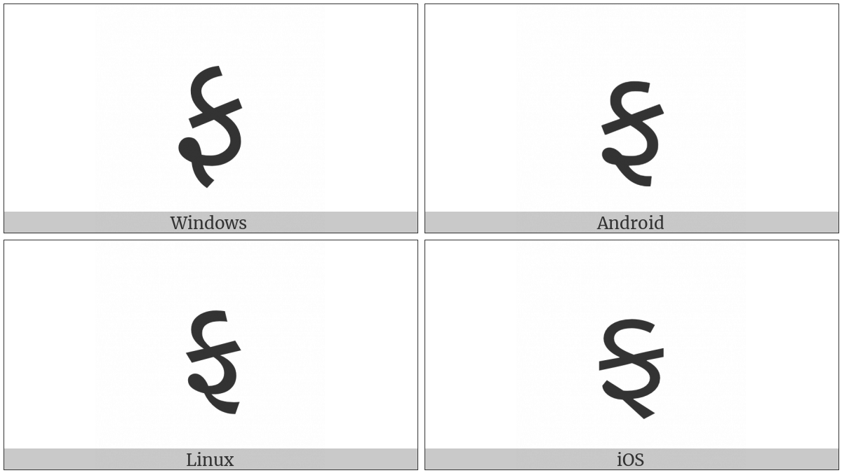 The image below shows how the “Gujarati Letter Pha” symbol might look like on different operating systems. If the font in which this web site is displayed does not contain the symbol and there is no fallback font able to render it, you can use the image below to get an idea of what it should look like.
