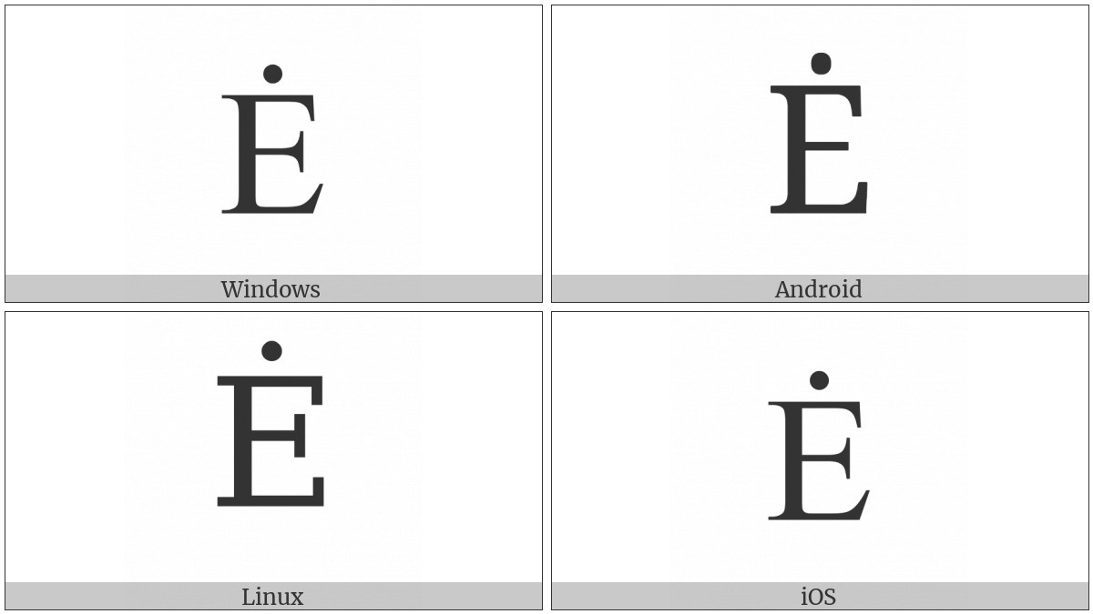 “Latin Capital Letter E With Dot Above” on various operating systems