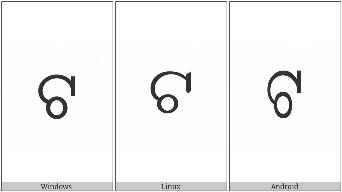 The image below shows how the “Oriya Letter Tta” symbol might look like on different operating systems. If the font in which this web site is displayed does not contain the symbol and there is no fallback font able to render it, you can use the image below to get an idea of what it should look like.