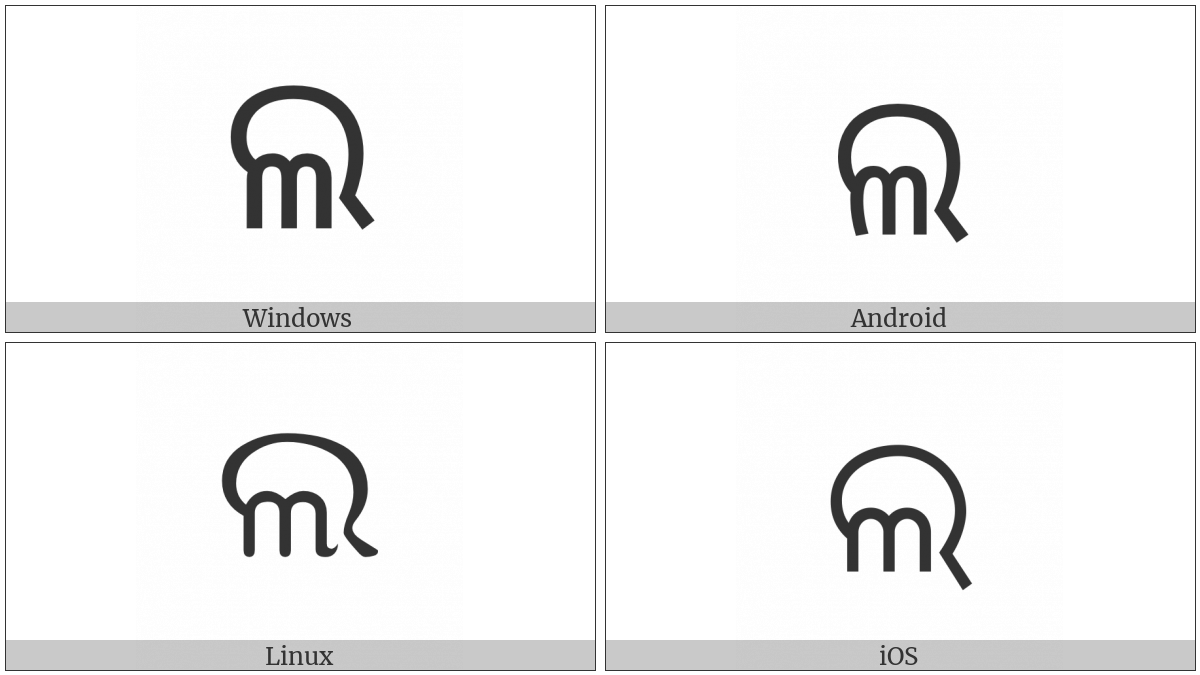 The image below shows how the “Oriya Letter La” symbol might look like on different operating systems. If the font in which this web site is displayed does not contain the symbol and there is no fallback font able to render it, you can use the image below to get an idea of what it should look like.