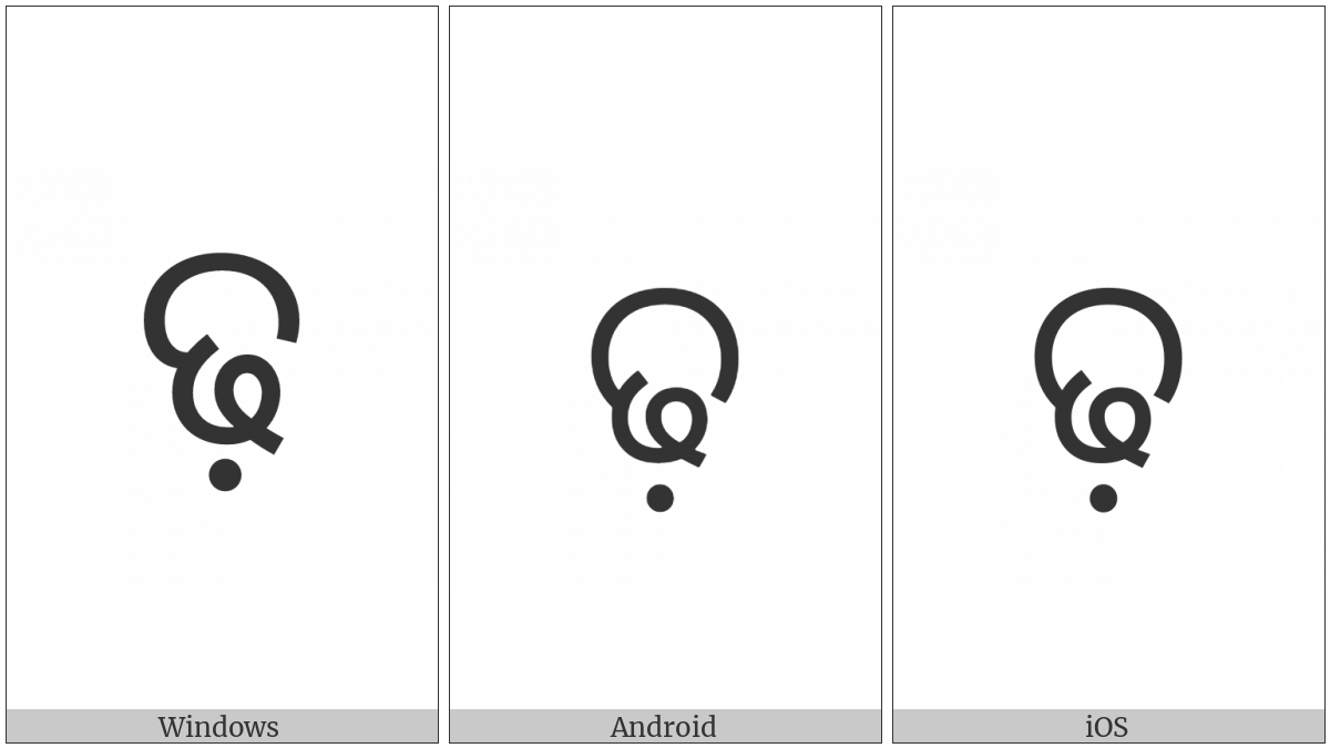 The image below shows how the “Oriya Letter Rha” symbol might look like on different operating systems. If the font in which this web site is displayed does not contain the symbol and there is no fallback font able to render it, you can use the image below to get an idea of what it should look like.