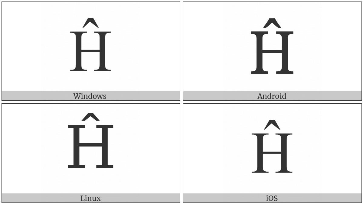 “Latin Capital Letter H With Circumflex” on various operating systems