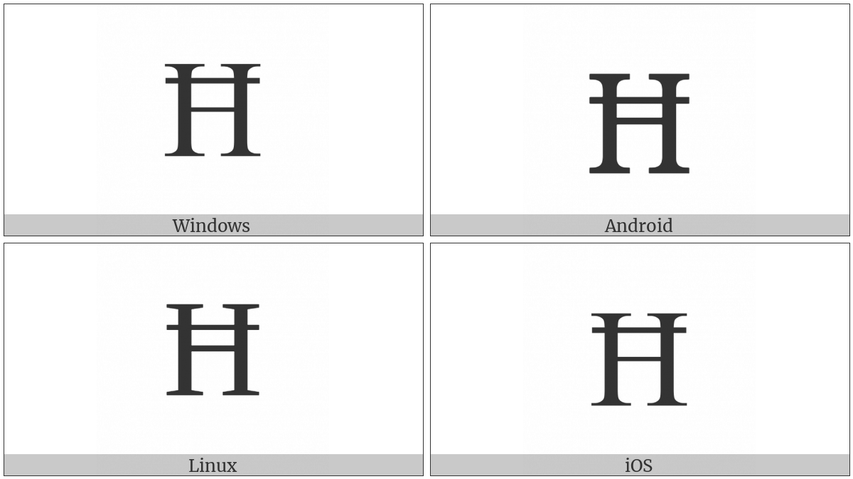 The image below shows how the “Latin Capital Letter H With Stroke” symbol might look like on different operating systems. If the font in which this web site is displayed does not contain the symbol and there is no fallback font able to render it, you can use the image below to get an idea of what it should look like.