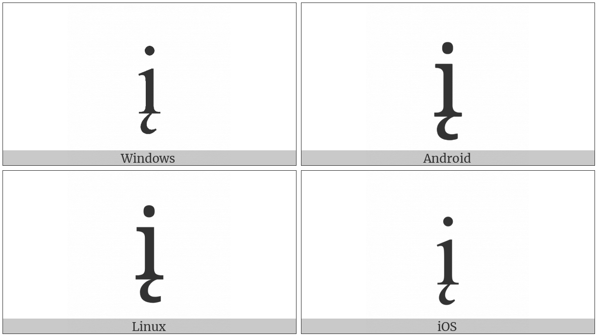 The image below shows how the “Latin Small Letter I With Ogonek” symbol might look like on different operating systems. If the font in which this web site is displayed does not contain the symbol and there is no fallback font able to render it, you can use the image below to get an idea of what it should look like.
