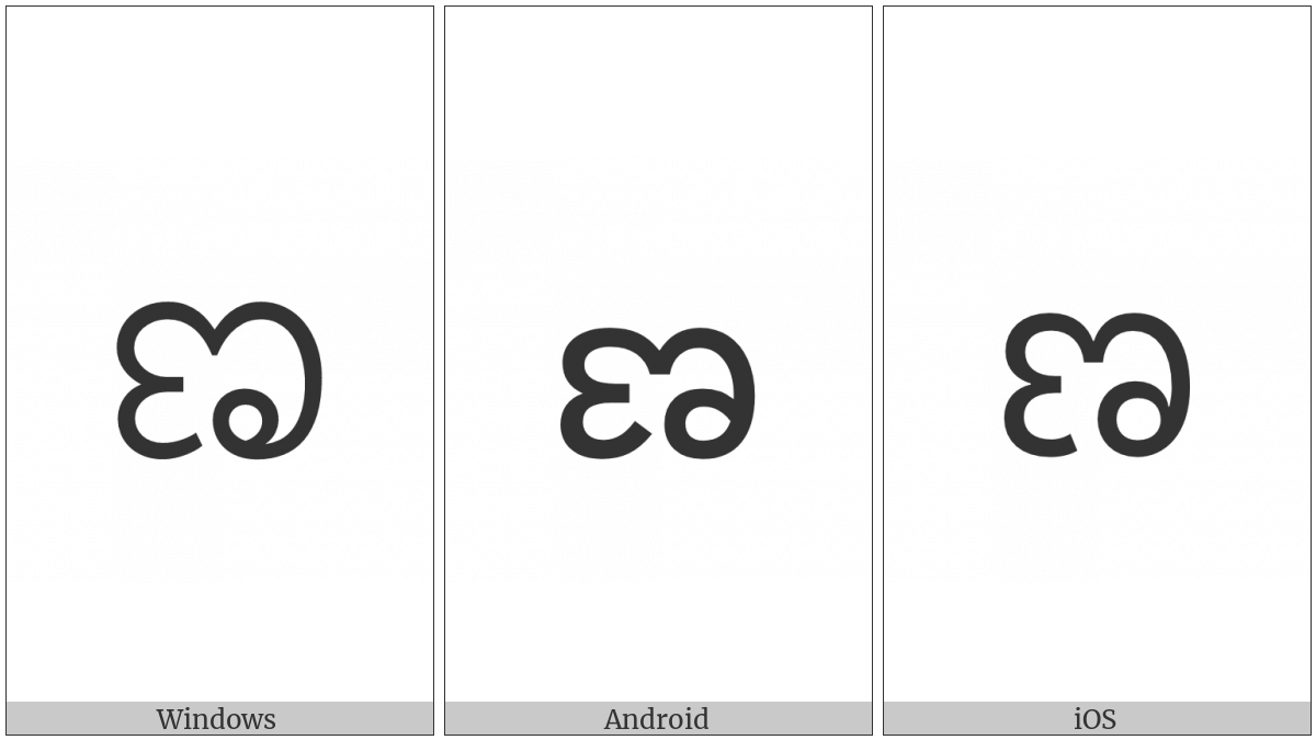 The image below shows how the “Telugu Letter Nna” symbol might look like on different operating systems. If the font in which this web site is displayed does not contain the symbol and there is no fallback font able to render it, you can use the image below to get an idea of what it should look like.