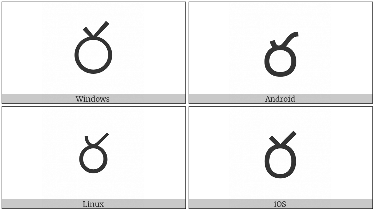 The image below shows how the “Telugu Letter Ra” symbol might look like on different operating systems. If the font in which this web site is displayed does not contain the symbol and there is no fallback font able to render it, you can use the image below to get an idea of what it should look like.